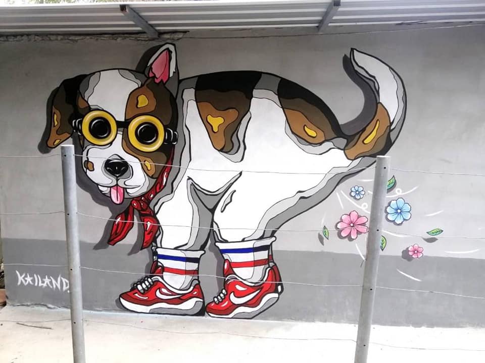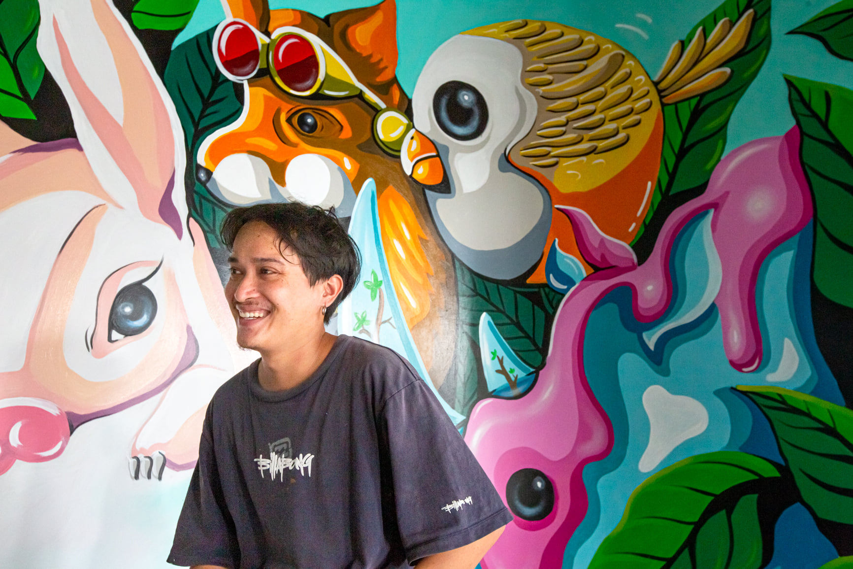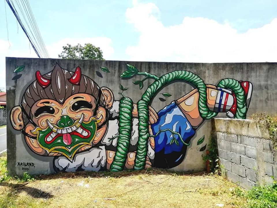“Kailand” (ไข่แลนด์) หรือ แจน ศิลปินสตรีทอาร์ตชาวภูเก็ต กับภาพจิตรกรรมฝาผนังฟรีสไตล์ที่ Co-working space ของ HOMA