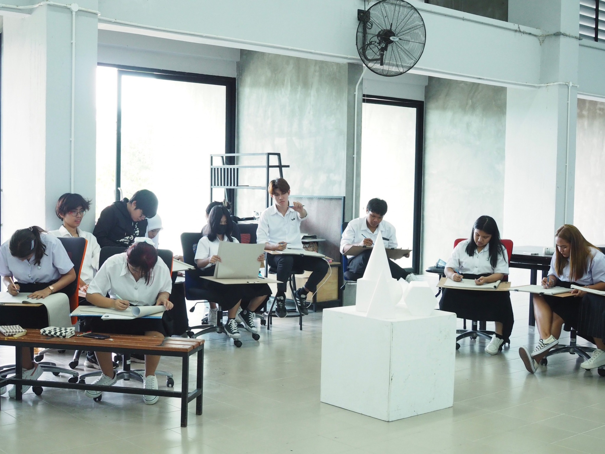 ภาพบรรยากาศกิจกรรม ‘การประกวดการเเข่งขันวาดภาพหุ่นนิ่ง’ ภายใต้หัวข้อ ‘ จุด เกิด ARCH ‘ ในงานนิทรรศการเปิดโลกงานสถาปัตยกรรมศาสตร์และการออกแบบ AD Open House 2023 ในวันศุกร์ ที่ 18 สิงหาคม 2566 เวลา 10.00-14.00 น. ที่ผ่านมา ณ อาคารปฏิบัติการทางสถาปัตยกรรมศาสตร์และการออกแบบ มหาวิทยาลัยวลัยลักษณ์