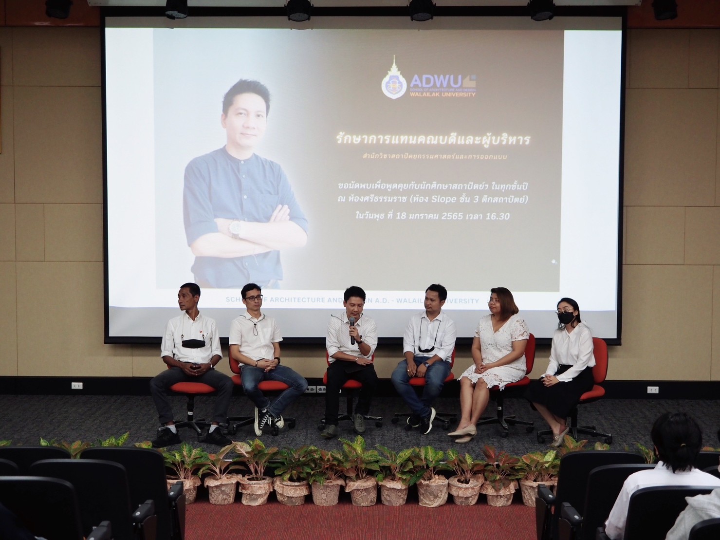 สำนักวิชาสถาปัตยกรรมศาสตร์และการออกแบบ “ยินดีต้อนรับนักศึกษาใหม่ทุกคน เข้าสู่ครอบครัวสถาปัตย์วลัยลักษณ์” เมื่อวันที่ 2 มิถุนายน 2566 ณ ห้อง 7217 อาคารเรียนรวม 7 ได้มีกิจกรรมปฐมนิเทศนักศึกษาใหม่นักศึกษาชั้นปี 1 สำนักวิชาสถาปัตยกรรมศาสตร์และการออกแบบ โดยมีคณบดีได้ให้โอวาทแก่นักศึกษาใหม่ และได้มีการเเนะนำคณะผู้บริหาร คณาจารย์สาขาสถาปัตยกรรม คณาจารย์สาขาการออกแบบภายใน รวมถึงบุคลากรของสำนักวิชาสถาปัตย์ฯให้นักศึกาษาใหม่ได้รู้จัก ทั้งนี้ในกิจกรรมปฐมนิเทศดังกล่าว มีรุ่นพี่ศิษย์เก่าและรุ่นพี่ปัจจุบันทั้ง 2 สาขาวิชา เข้าร่วมต้อนรับและพูดคุยอย่างเป็นกันเองเเละอบอุ่น
