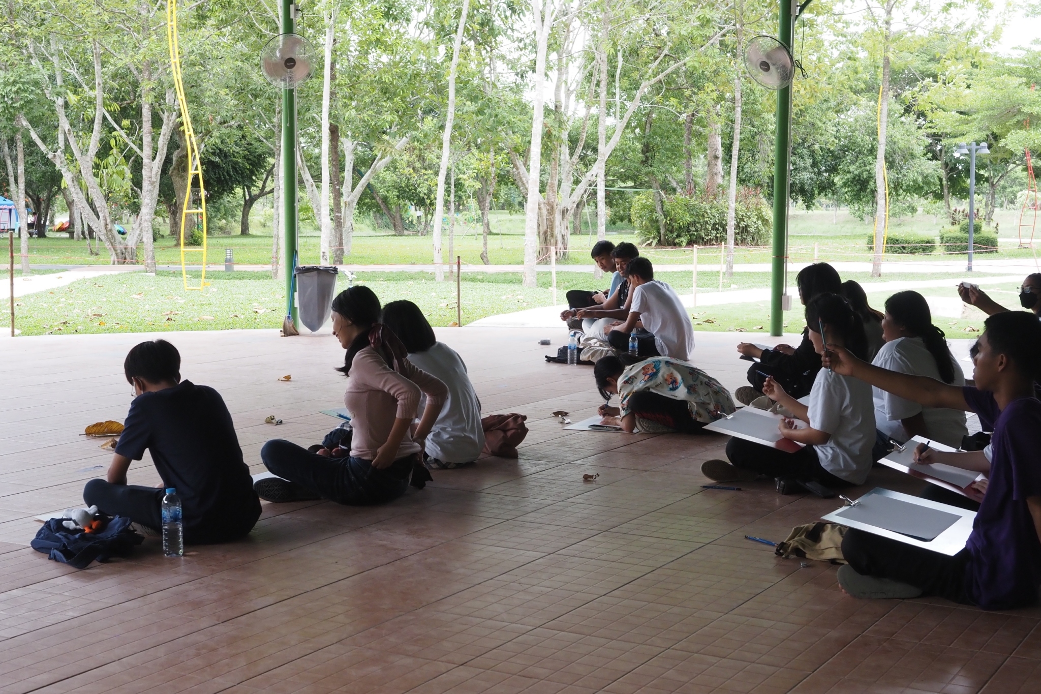 ภาพบรรยากาศ FEEL GOOD กับกิจกรรม “กลิ่นศิลป์ ถิ่นถาปัตย์” Workshop Drawing Vol 1 : กิจกรรมการฝึกวาดเส้น ทัศนียภาพ อาคารและต้นไม้ เมื่อวันที่ 15 กรกฎาคม 2566 ที่ผ่านมา ในพื้นที่อุทยานพฤกษศาสตร์ มหาวิทยาลัยวลัยลักษณ์ โดย รองศาสตราจารย์ บรรจงศักดิ์ พิมพ์ทอง อาจารย์ผู้เชียวชาญด้านทัศนศิลป์งานวาดเส้น งานสีน้ำ ระดับปรมาจารย์