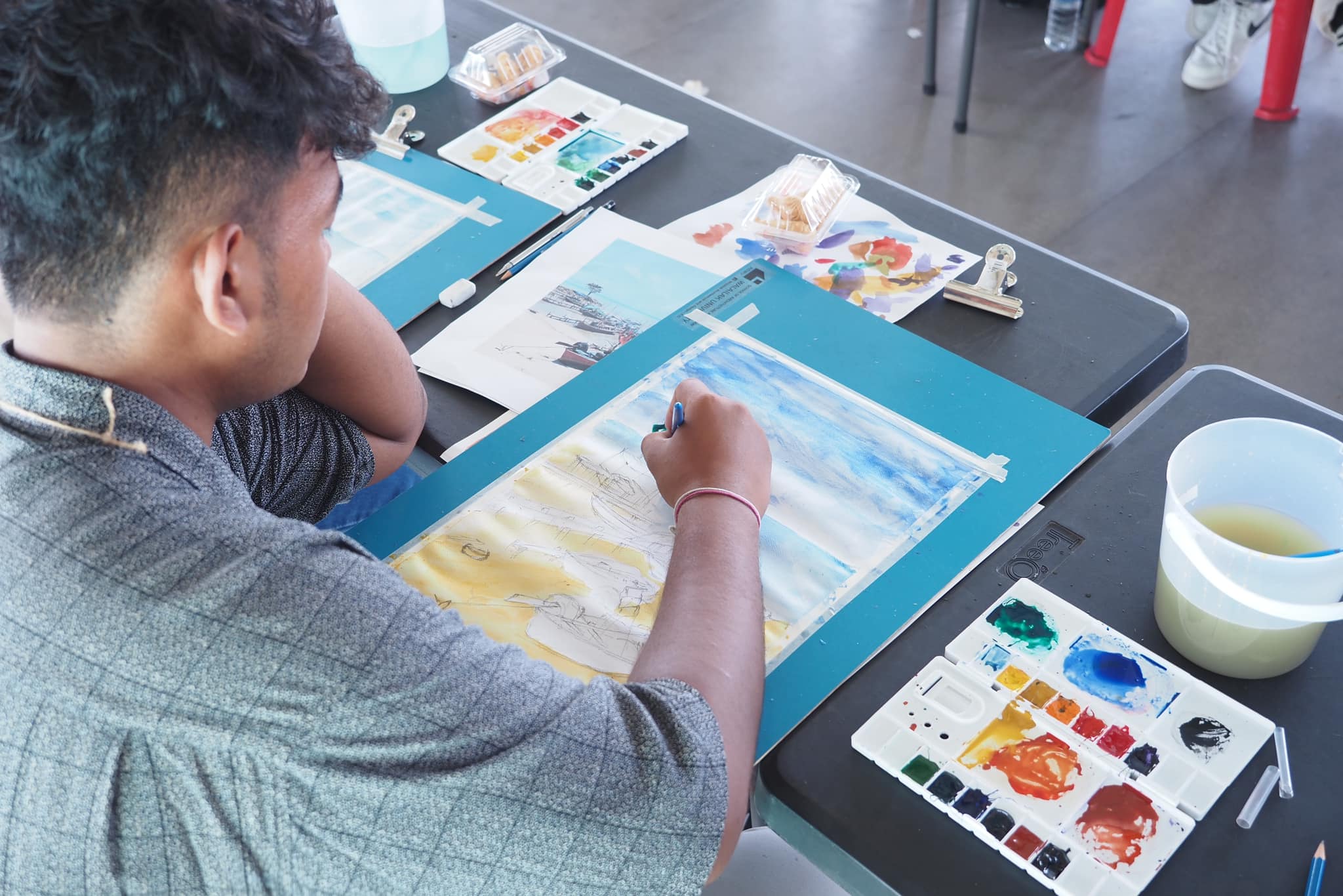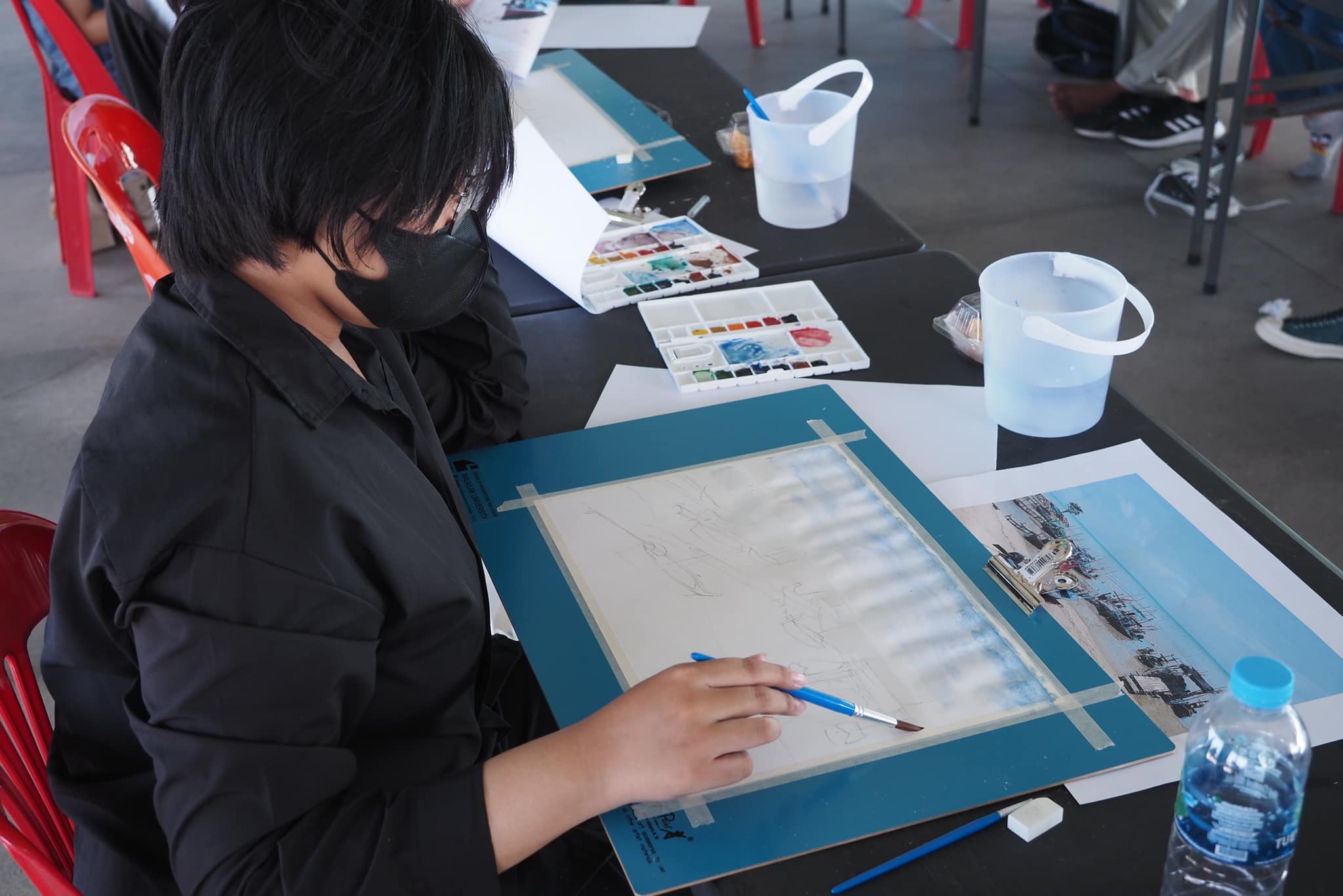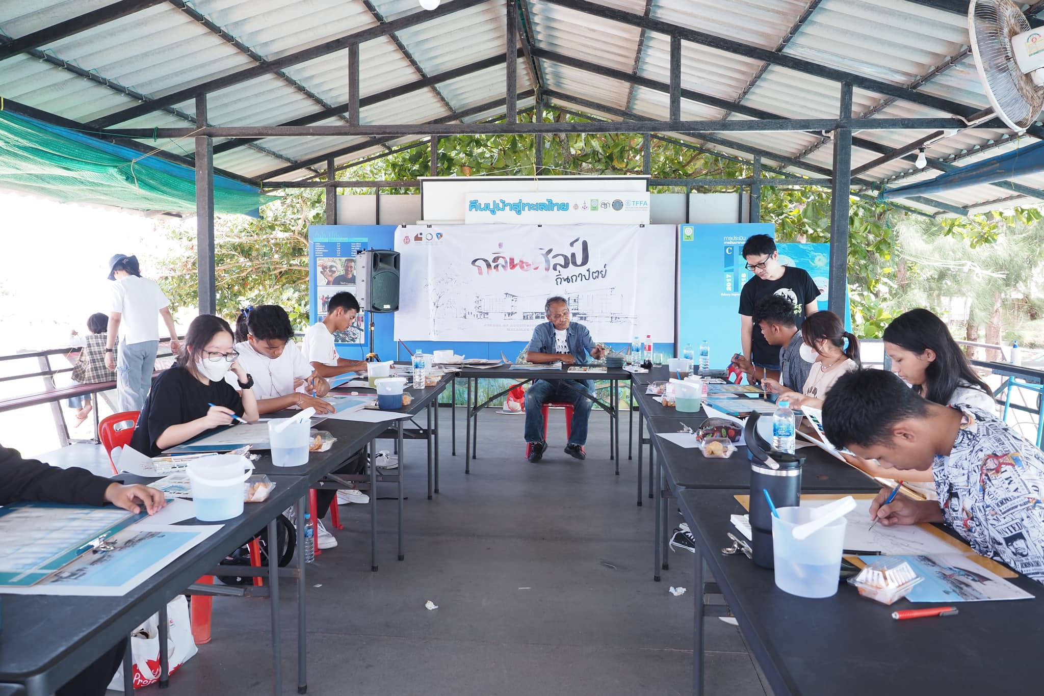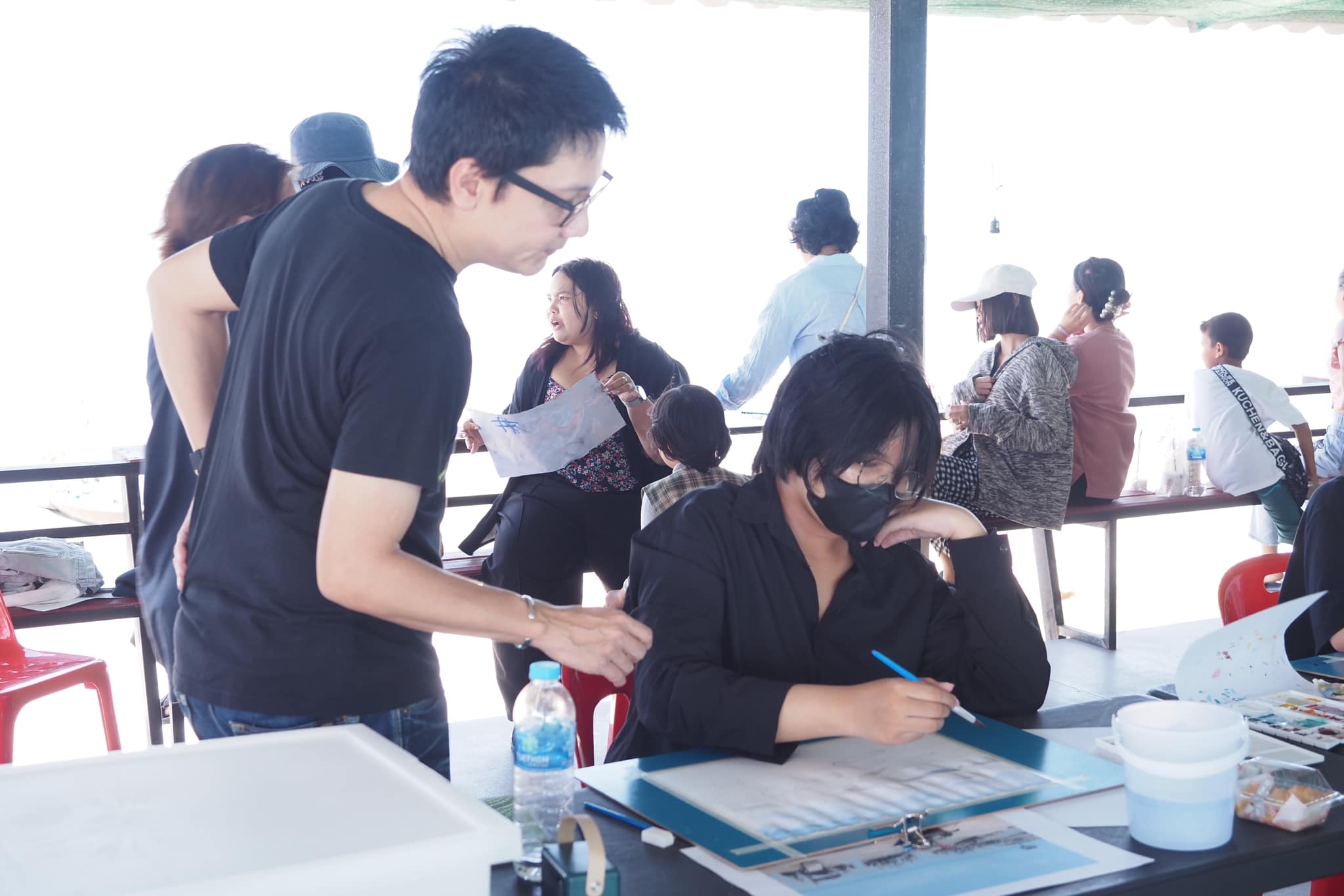 ภาพบรรยากาศติวสีน้ำริมทะเลในกิจกรรม “กลิ่นศิลป์ถิ่นถาปัตย์” Vol 2 : กิจกรรมการฝึกวาดเส้น ลงสีน้ำ