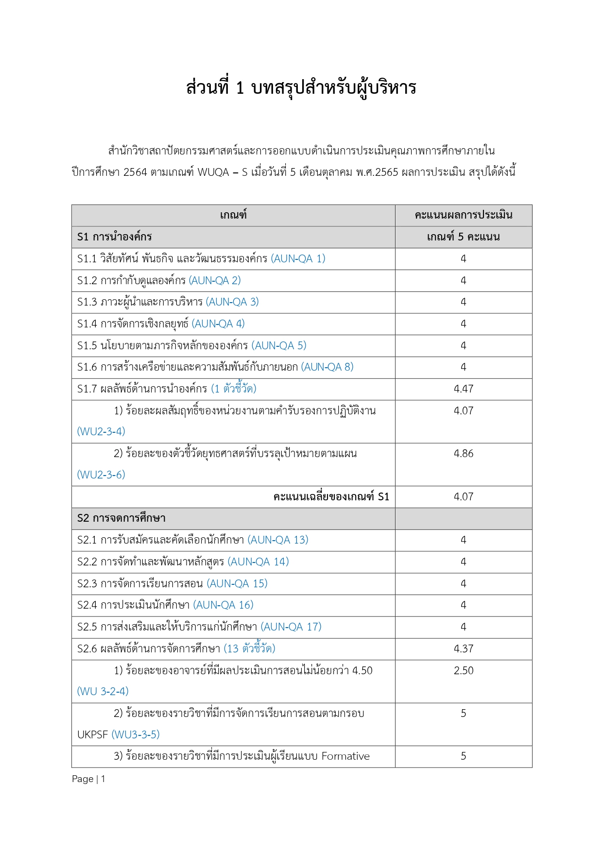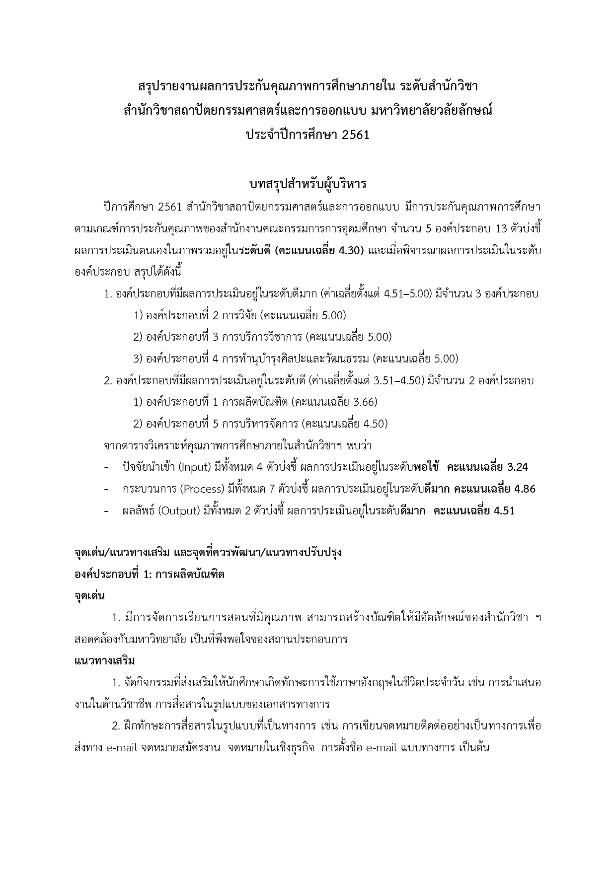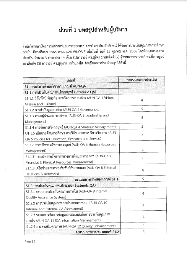 งานประกันคุณภาพการศึกษา ระดับสำนักวิชา