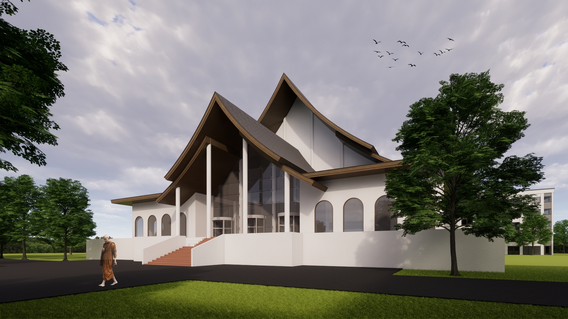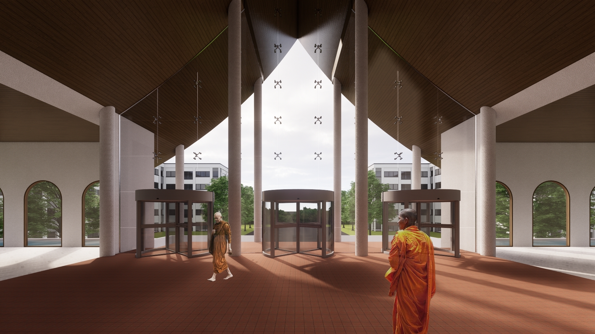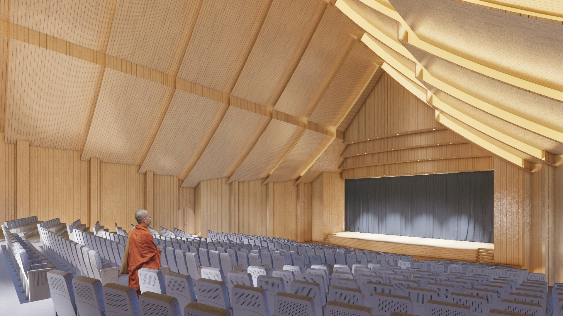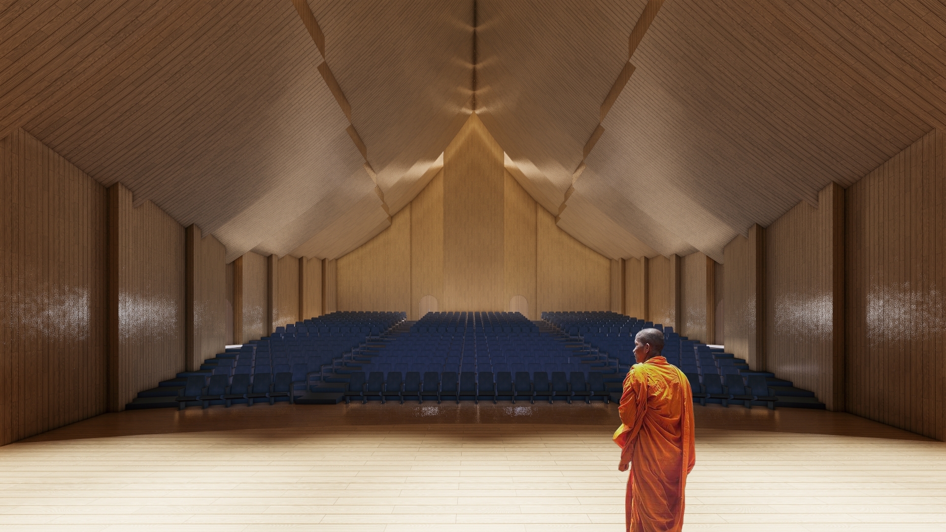 ผู้ช่วยศาสตราจารย์ธนสัณฑ์ เทพรัตน์ และอาจารย์นริสา น้อยทับทิม สำนักวิชาสถาปัตยกรรมศาสตร์และการออกแบบมหาวิทยาลัยวลัยลักษณ์ ได้บริการวิชาการด้านการออกแบบหอประชุม 500 ที่นั่ง มหาวิทยาลัยมหามกุฏราชวิทยาลัย วิทยาเขต ศรีธรรมาโศกราช จังหวัดนครศรีธรรมราช โดยได้นำแนวความคิดด้านสถาปัตยกรรมพื้นถิ่นภาคใต้มาประยุกต์ใช้ในด้านการออกแบบหอประชุมในครั้งนี้ อีกทั้งยังได้นำความรู้และประสบการณ์ที่ได้รับจากการออกแบบในครั้งนี้ เผยแพร่ออกสู่สาธารณะให้แก่นักเรียนและผู้ที่มีความสนใจในรูปแบบของการจัดนิทรรศการ เพื่อเป็นการให้ความรู้แก่บุคคลโดยทั่วไปที่มความสนใจด้านการออกแบบสถาปัตยกรรม